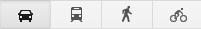 Which brings me to the history of Google Maps. OK, I know that must seem like a stretch, but soon after I read the New York Times article mentioned above, I found myself looking at Google Maps. I don’t remember where I was going or what I was searching for, but what I noticed on my screen were the four icons on the left, sitting side by side in seeming equality: a car, a bus, a walker, and a cyclist. It got me wondering: could the growing prominence of these other modes of transportation in online mapping programs be a further sign of the declining role of the automobile in our culture?