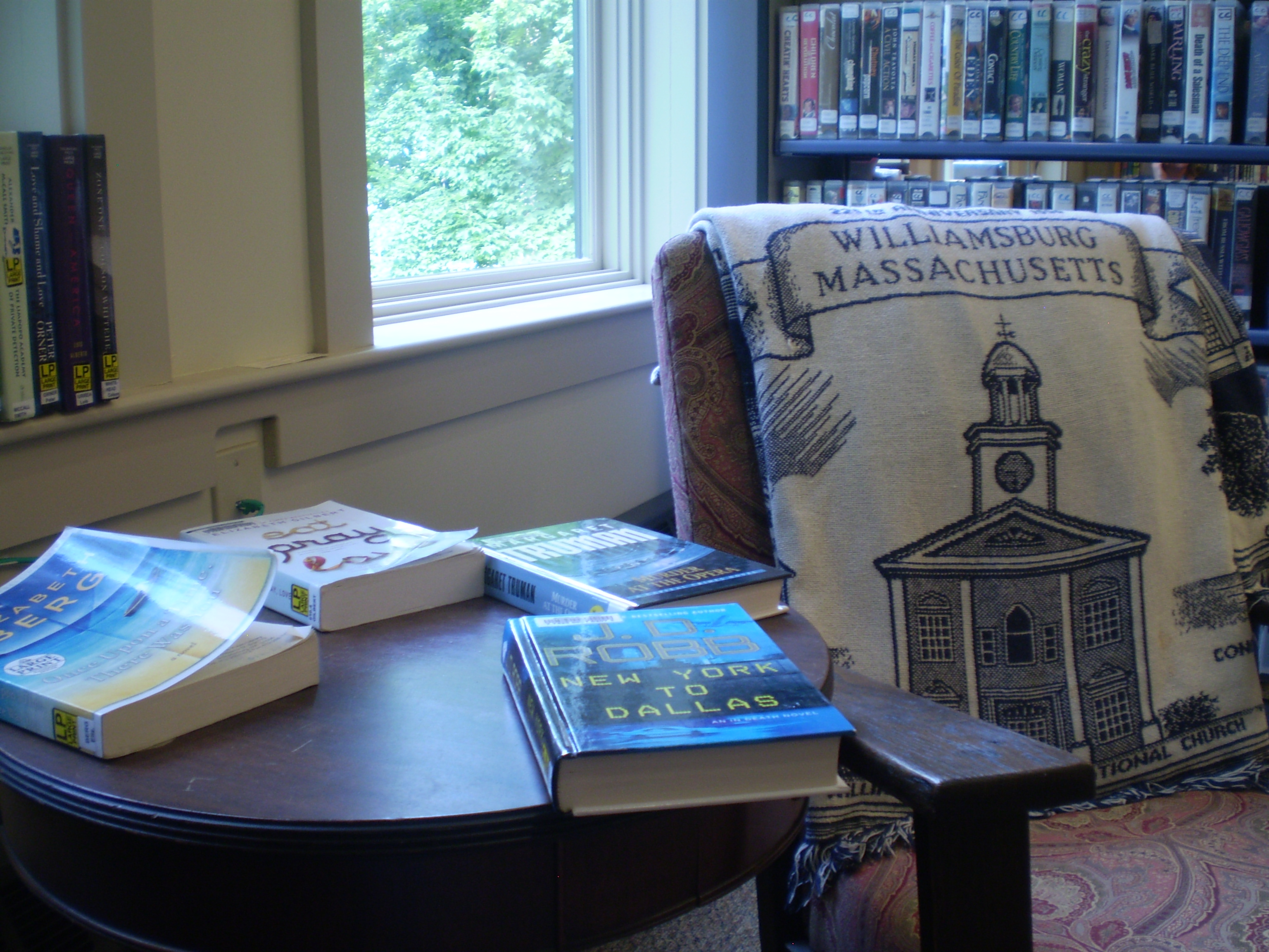 The R42 runs every hour or so from early morning to early evening, six days a week (there’s no service on Sunday). Since the Five College free fare doesn’t apply in the summer, I needed to have $1.25 in exact change for each leg of the journey. So I stopped at the 7-11 on King Street and asked for change. It was a Tuesday, and I had decided to take the 2:25 pm bus from downtown Northampton, arriving in Williamsburg around 3:00 pm, and then board the 4:15 pm bus for home. I would spend the intervening seventy-five minutes at the Williamsburg public library.