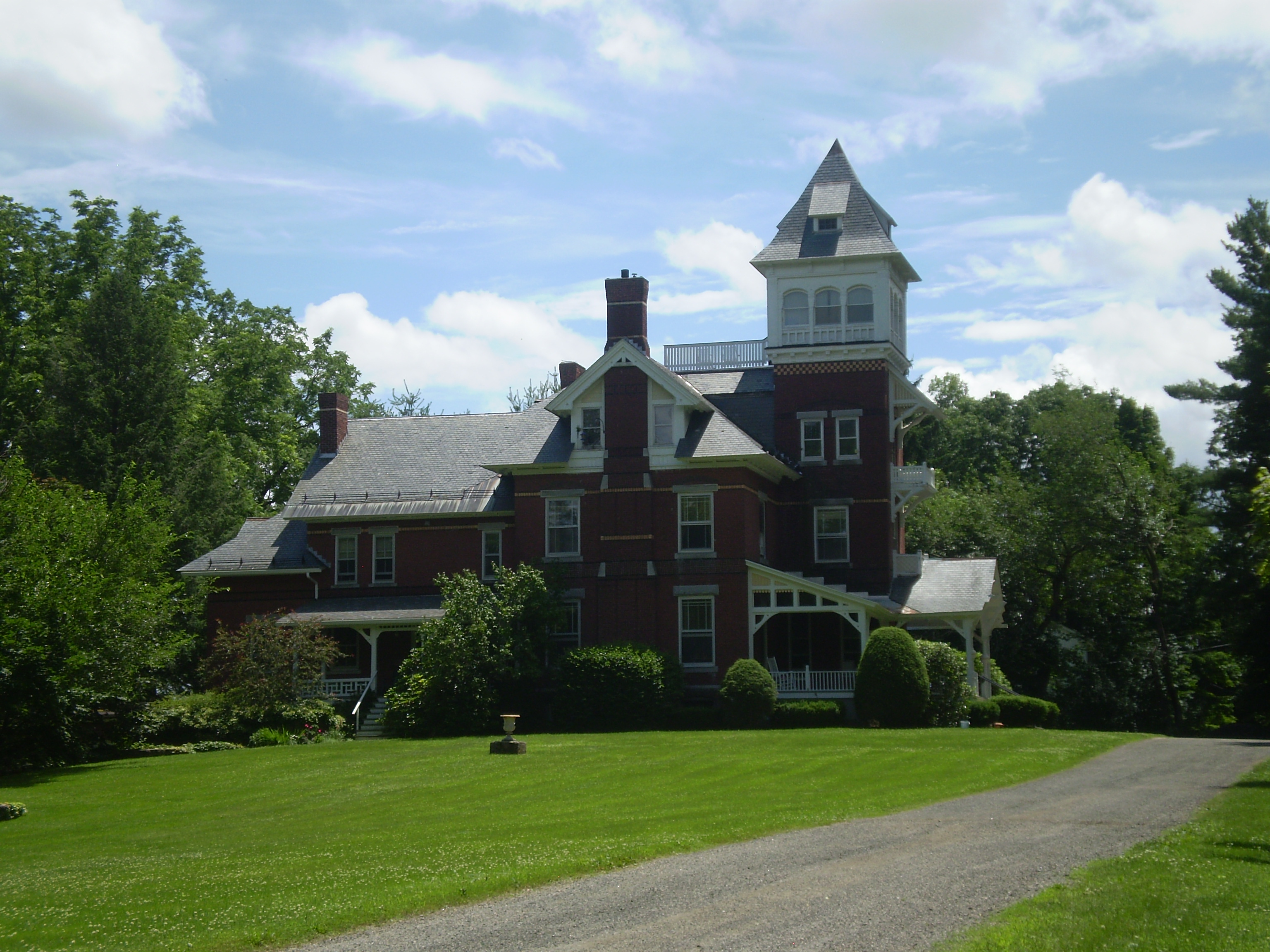 Once in Leeds, I took a detour up Grove Hill to see the Lucius Dimock mansion, which I had seen from the R42 bus the day before but wasn’t able to photograph. Dimock was the director of the Nonotuck Silk Mill, down the hill in Leeds, in the late nineteenth and early twentieth centuries. He’s buried in Bridge Street cemetery in Northampton, near my house. The mansion is now condominiums.