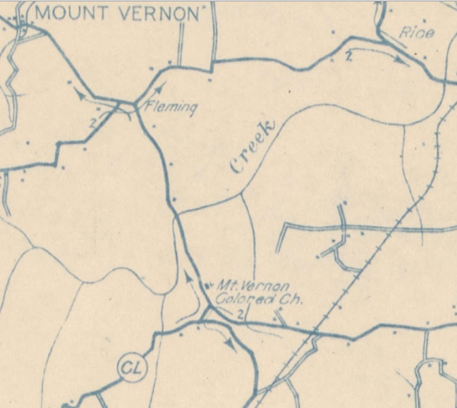 As for Munroe Fleming and his family, I wish I knew more about them. I wonder if they worshipped at Mt. Vernon Presbyterian Church, a black congregation located just down Carson Road (above in the Google Maps street view) from the old Fleming estate. It’s shown here in this 1910 map of rural delivery routes in Rowan County, where it’s labeled “Mt. Vernon Colored Ch.”