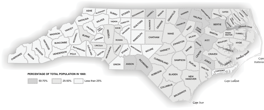 The slave population of NC, by county, in 1860: NCpedia