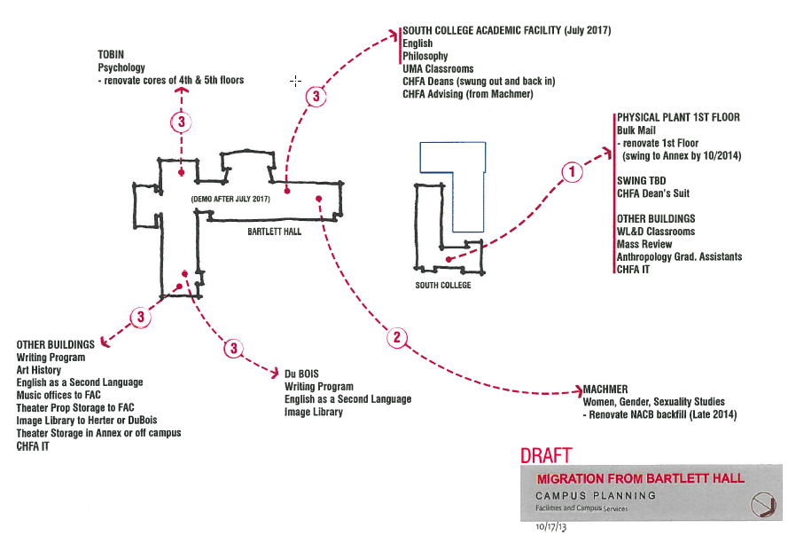 “Migration from Bartlett Hall.” Draft document from Campus Planning, 10/17/13.