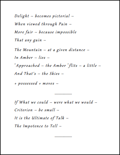 2013-12-14_20-57-01 Published December 15, 2013 at 418 × 541 in My Blue Peninsula, Part One ← Previous Next → Fascicle 28, p. 17: “Delight – becomes pictorial –”; “If What we could – were what we would –”