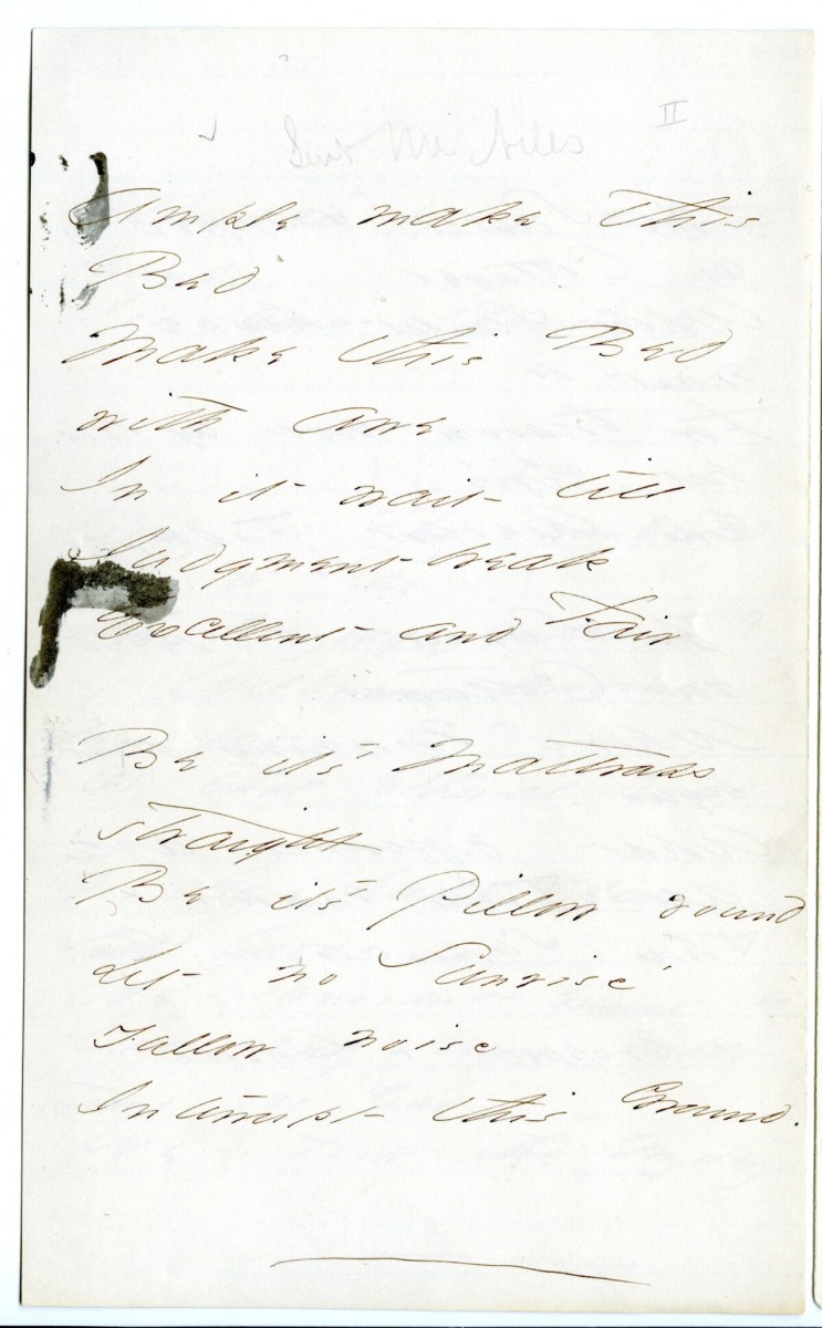 Fr804 Published January 7, 2014 at 1199 × 1937 in My Blue Peninsula, Part One ← Previous Next → “Ample make this Bed,” (Fr804), from Emily Dickinson Archive.