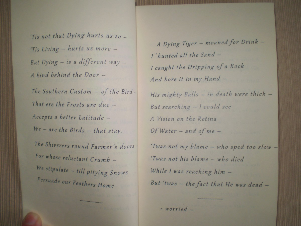 OLYMPUS DIGITAL CAMERA Published December 14, 2013 at 3072 × 2304 in My Blue Peninsula, Part One ← Previous Next → Fascicle 28, pp. 4-5: “‘Tis not that Dying hurts us so –”; “A Dying Tiger – moaned for Drink –”