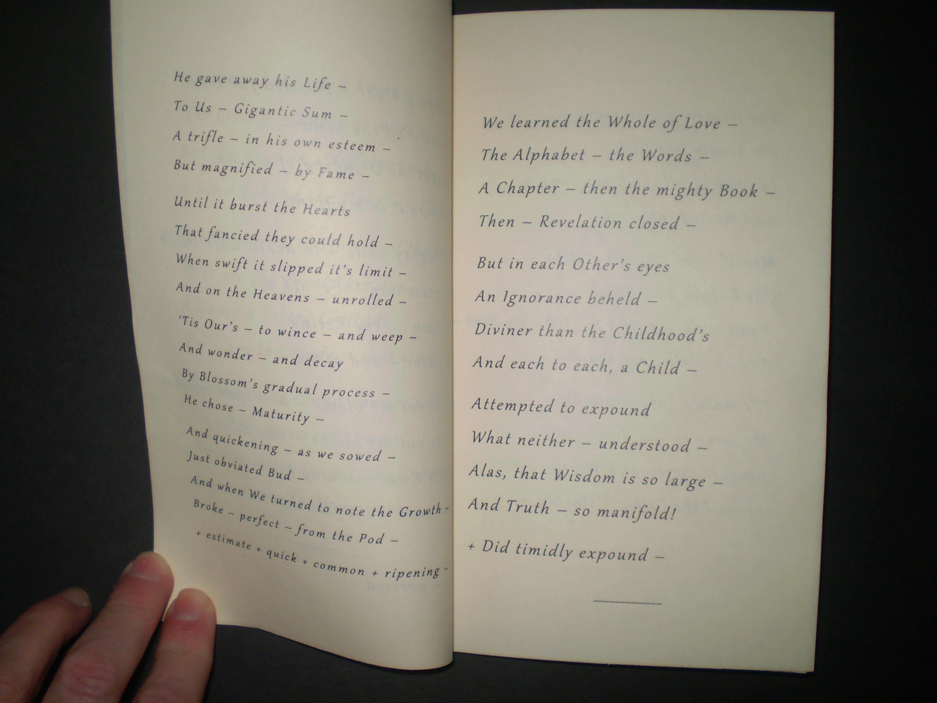 OLYMPUS DIGITAL CAMERA Published December 17, 2013 at 3072 × 2304 in My Blue Peninsula, Part One ← Previous Next → Fascicle 28, pp. 6-7: “He gave away his Life –”; “We learned the Whole of Love –”