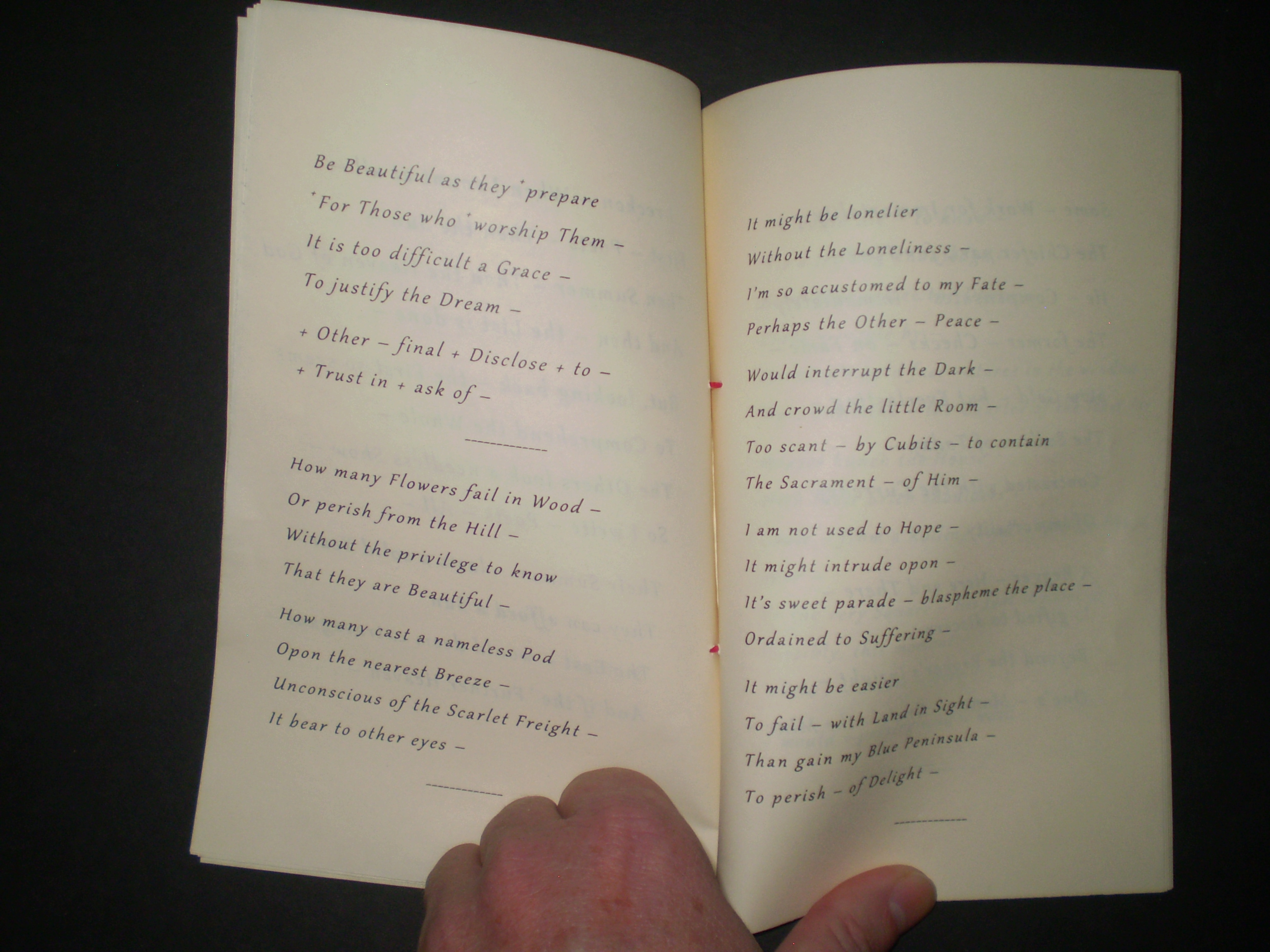 OLYMPUS DIGITAL CAMERA Published December 17, 2013 at 3072 × 2304 in My Blue Peninsula, Part One ← Previous Next → Fascicle 28, pp. 12-13: “I reckon – When I count at all –” (cont’d); “How many Flowers fail in Wood –”; “It might be lonelier”
