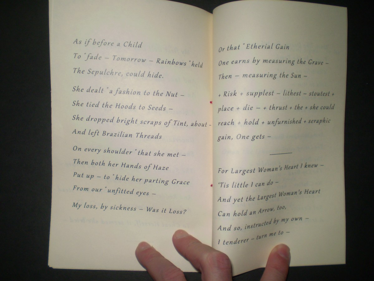 OLYMPUS DIGITAL CAMERA Published December 17, 2013 at 3072 × 2304 in My Blue Peninsula, Part One ← Previous Next → Fascicle 28, pp. 20-21: “My first well Day – since many ill –” (cont’d); “For Largest Woman’s Heart I knew –”