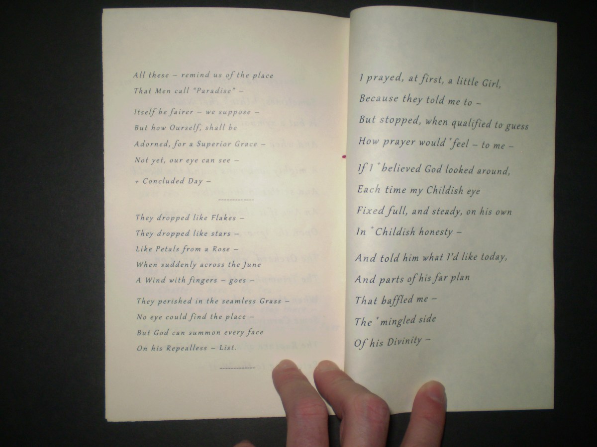 OLYMPUS DIGITAL CAMERA Published December 17, 2013 at 3072 × 2304 in My Blue Peninsula, Part One ← Previous Next → Fascicle 28, pp. 24-25: “‘Heaven’ has different Signs – to me –” (cont’d); “They dropped like Flakes –”; “I prayed at first, a little Girl,”