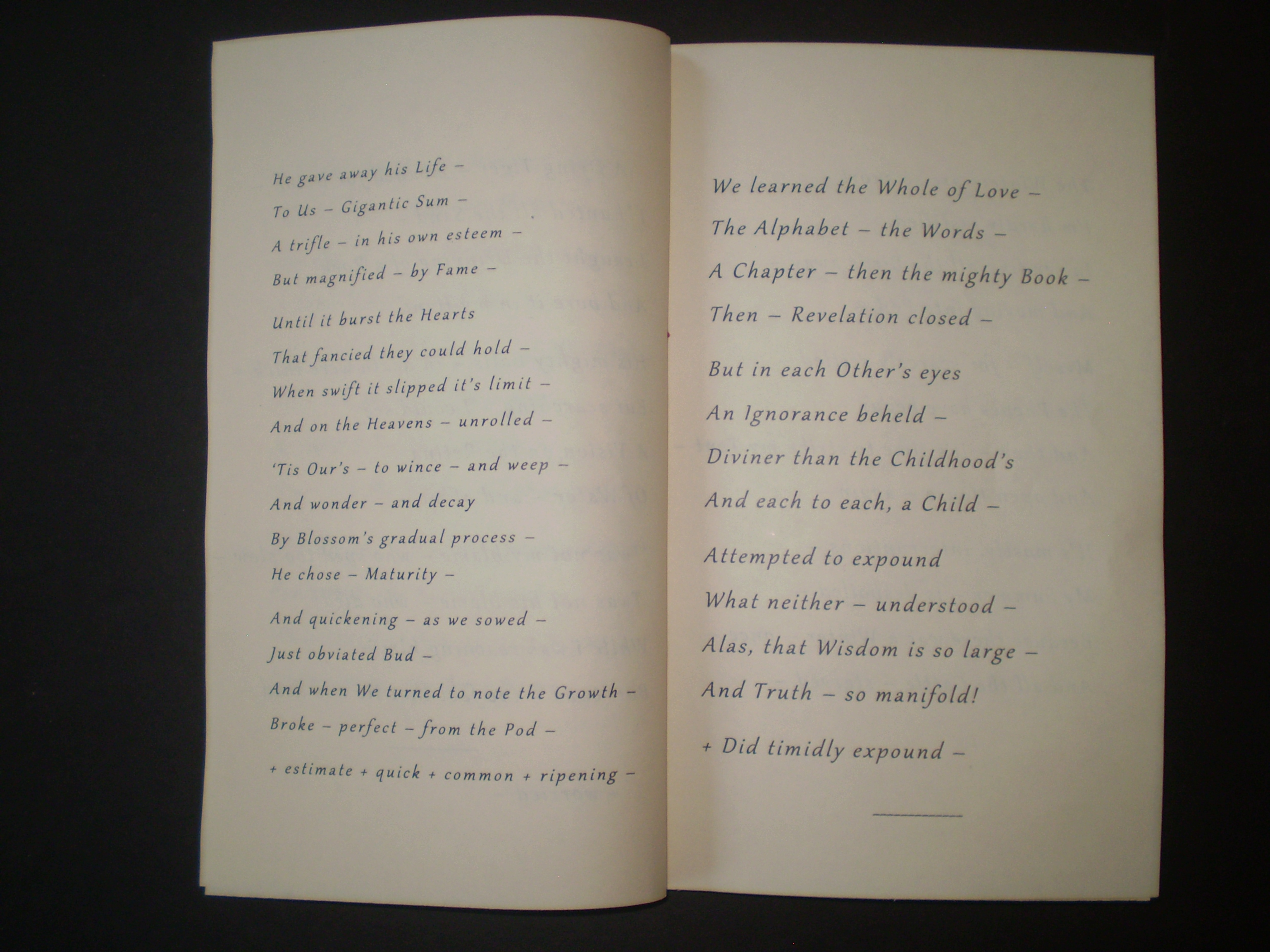 OLYMPUS DIGITAL CAMERA Published December 19, 2013 at 3072 × 2304 in My Blue Peninsula, Part One ← Previous Next → Fascicle 28, pp. 6-7: “He gave away his Life –”; “We learned the Whole of Love –”