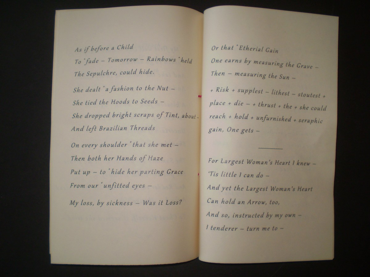 OLYMPUS DIGITAL CAMERA Published December 19, 2013 at 3072 × 2304 in My Blue Peninsula, Part One ← Previous Next → Fascicle 28, pp. 20-21: “My first well Day – since many ill –” (cont’d); “For Largest Woman’s Heart I knew –”