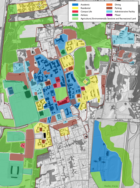 2014-03-01_13-11-23 Published March 1, 2014 at 466 × 626 in The Right of Way ← Previous Next → Campus Land Use Map, UMass Amherst Campus Master Plan, p. 70