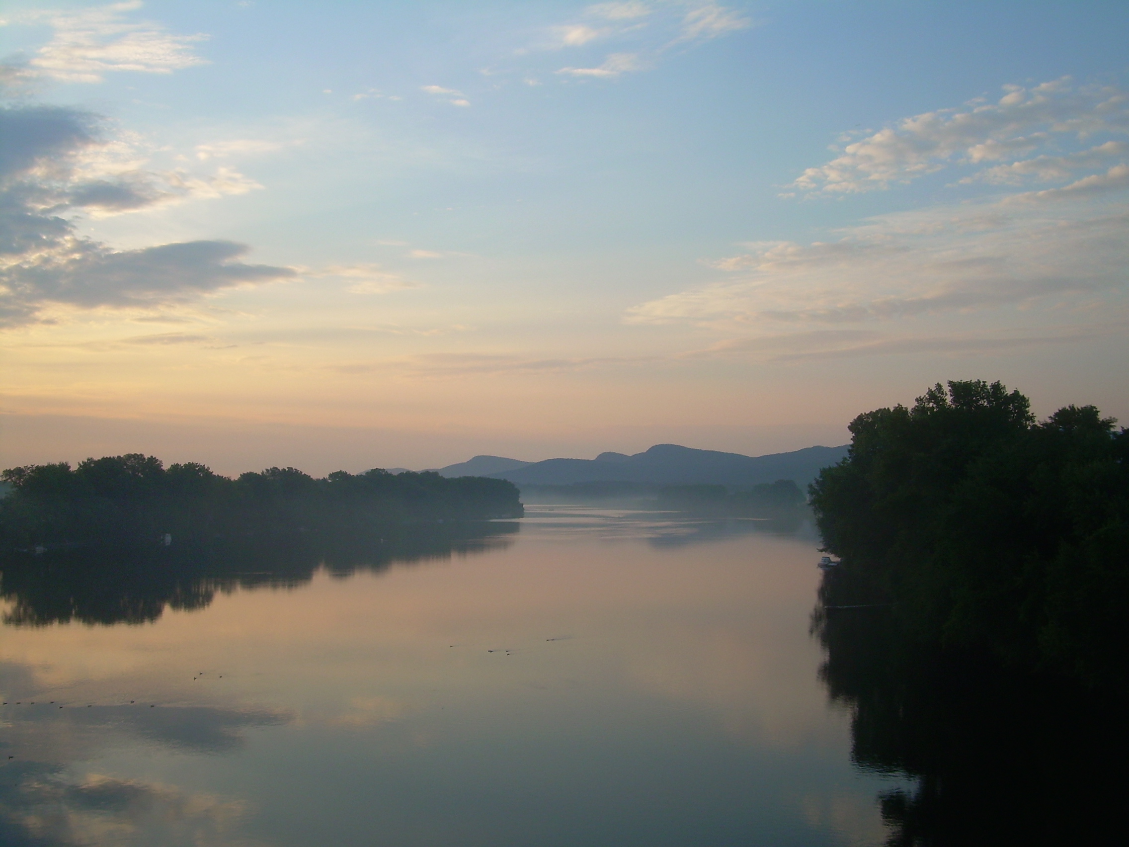 So one evening after work, soon after moving here, I walked to the middle of the Coolidge Bridge with my camera, crossed the four lanes of traffic, leaned over the southern railing, and took several photographs of the scene before me. I realized immediately that I would need to come again in the morning, when the sun would be rising behind the mountains; in the middle of the day, when the landscape would be lit, brightly, from overhead; in late fall, when the leaves of the riverside trees would have changed color; in the middle of winter, when everything would be covered in white . . .
