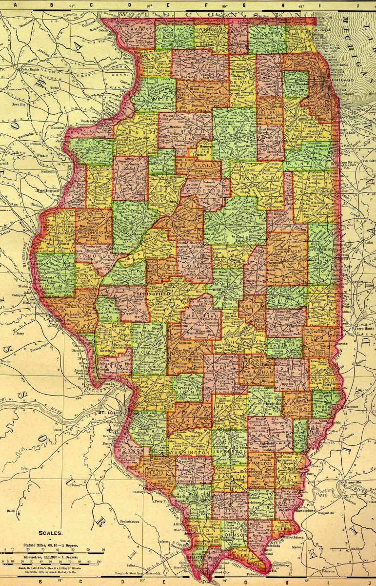 US – IL -1895 Published December 15, 2014 at 1566 × 2438 in The Churches of Russell Wallis, Part One ← Previous Next → 1895 Rand, McNally map of Illinois